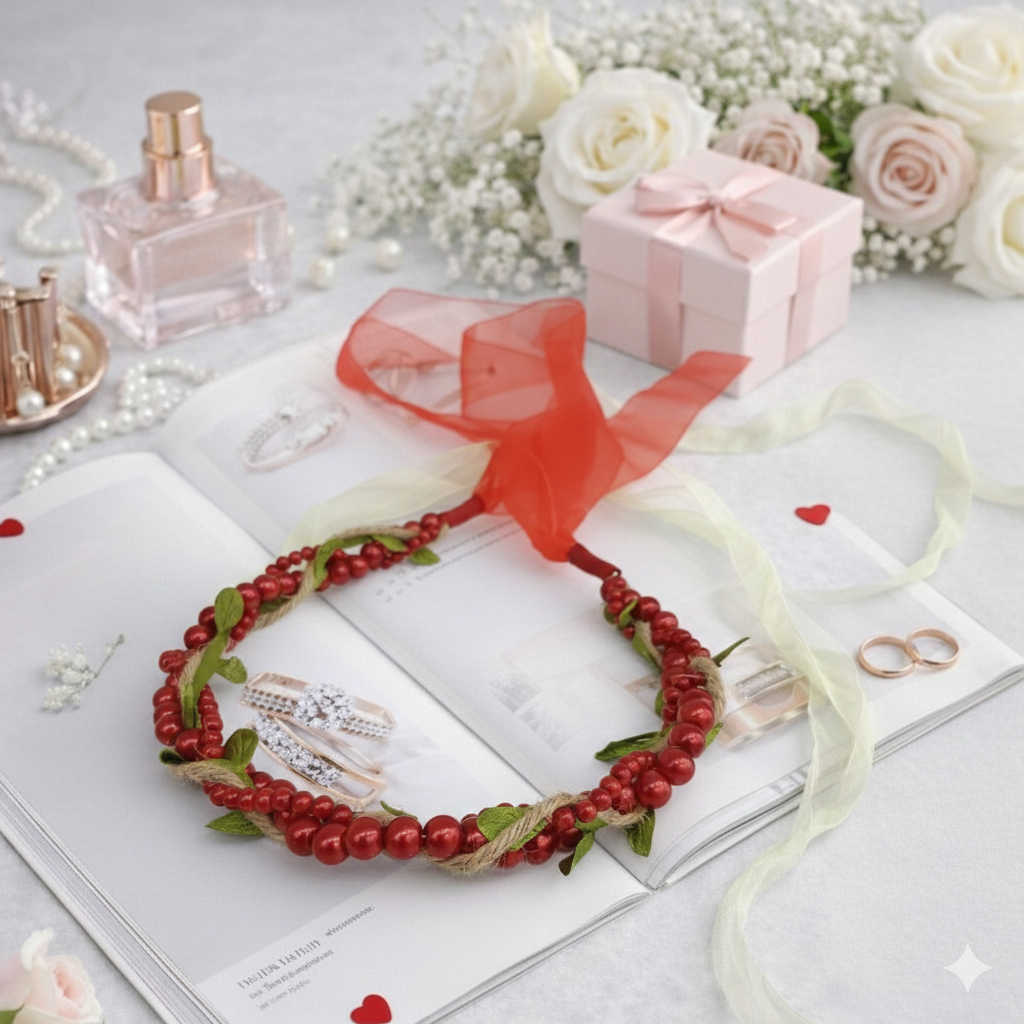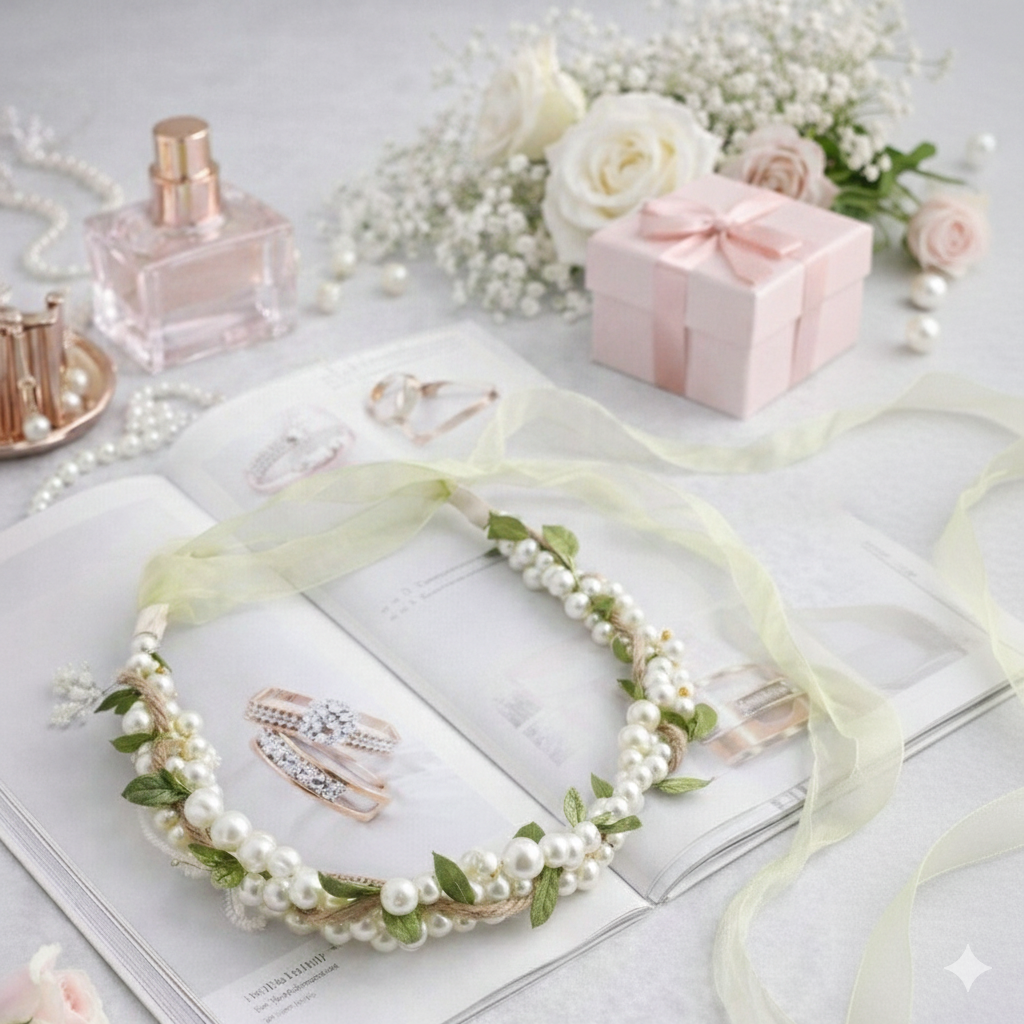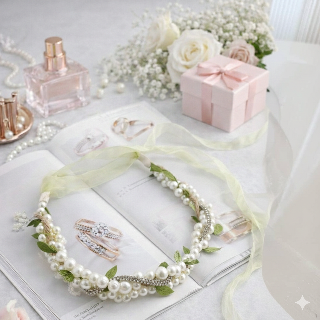 ریسه مرواریدی با ریسه فول نگین و روبان سفید
