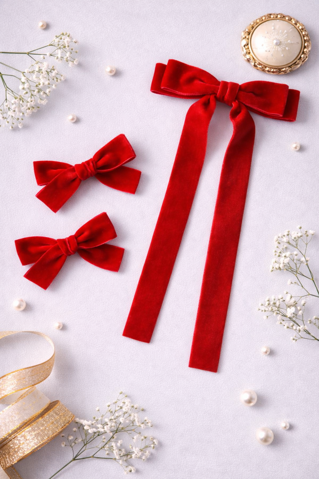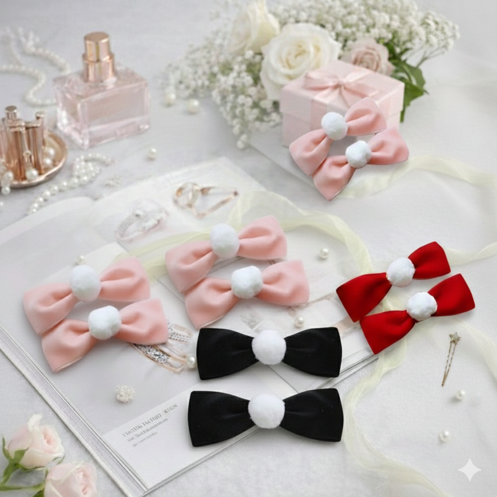 پاپیون دوگوشی پوم پوم دار مخملی (جفتی)