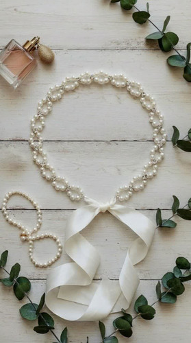 ریسه مرواریدی با ریسه فول نگین و روبان سفید